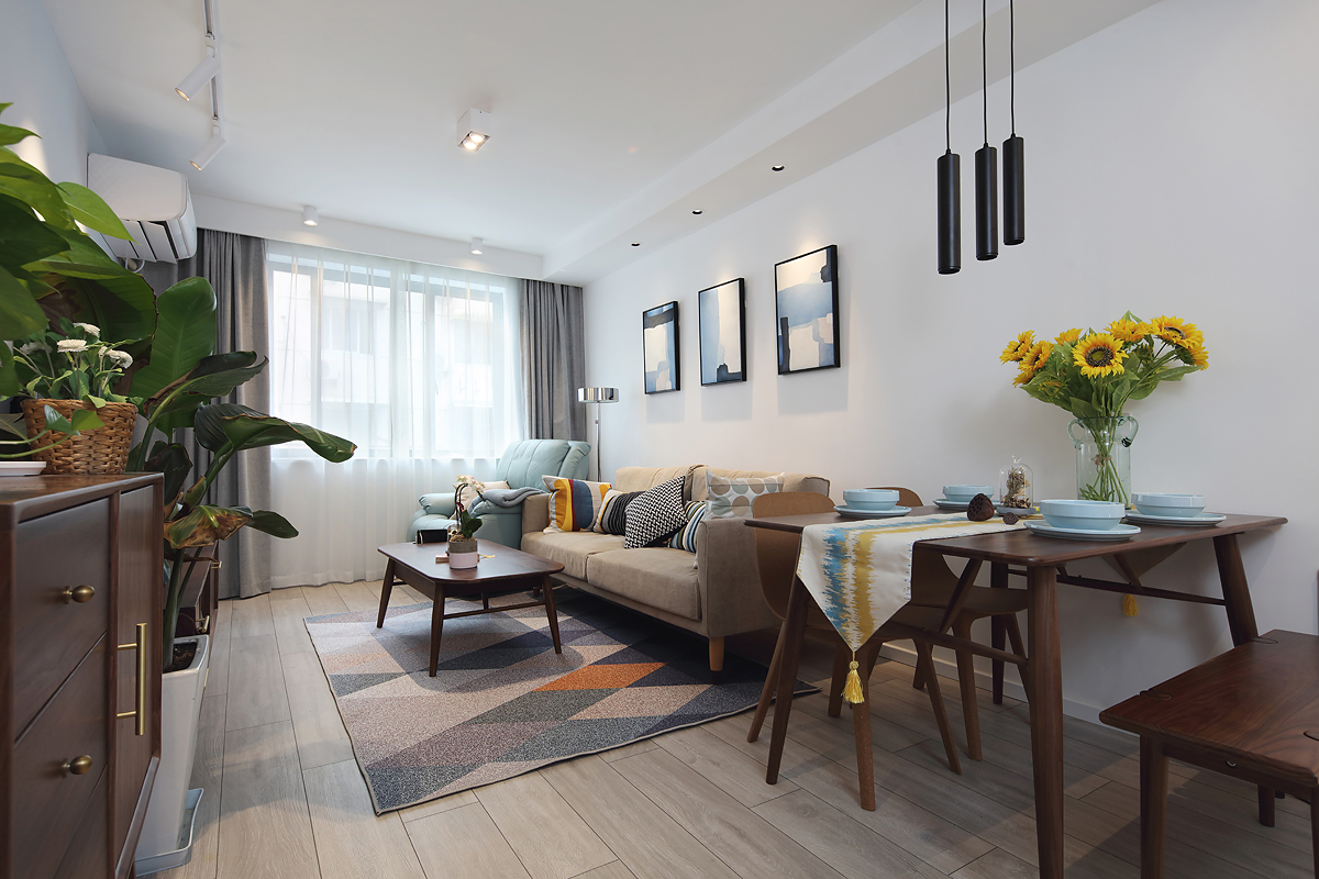 設計師根據具體戶型,打造了這樣一套現代簡約風的方案,活潑輕快,同時又帶點復古的優雅,在暖光的映襯下十分舒適溫馨。