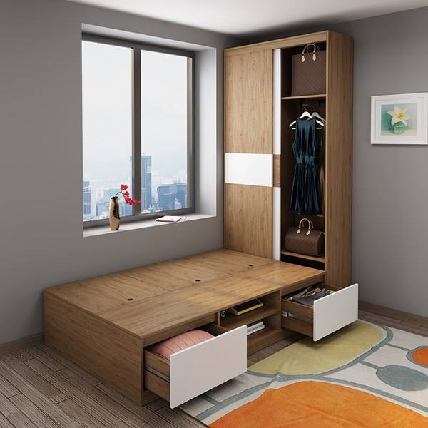衣柜空間不夠,換季過后厚棉被和厚衣服沒有地方安置,這時候,床底空間會是個很好的選擇。現在很多床鋪都做成了床底帶抽屜的樣式,抽屜可以用來放置一些內衣褲或者襪子之類的小衣物。而儲物式榻榻米,就可以用來放置一些厚衣服或者被子。