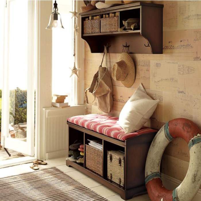在布置玄關的時候,我們可以根據玄關的空間大小,安置一個換鞋的地方。像這樣的換鞋卡座,就是個不錯的選擇。卡座不僅美觀,還有一定的收納功能,可以用來放置襪子、手套之類的物件。