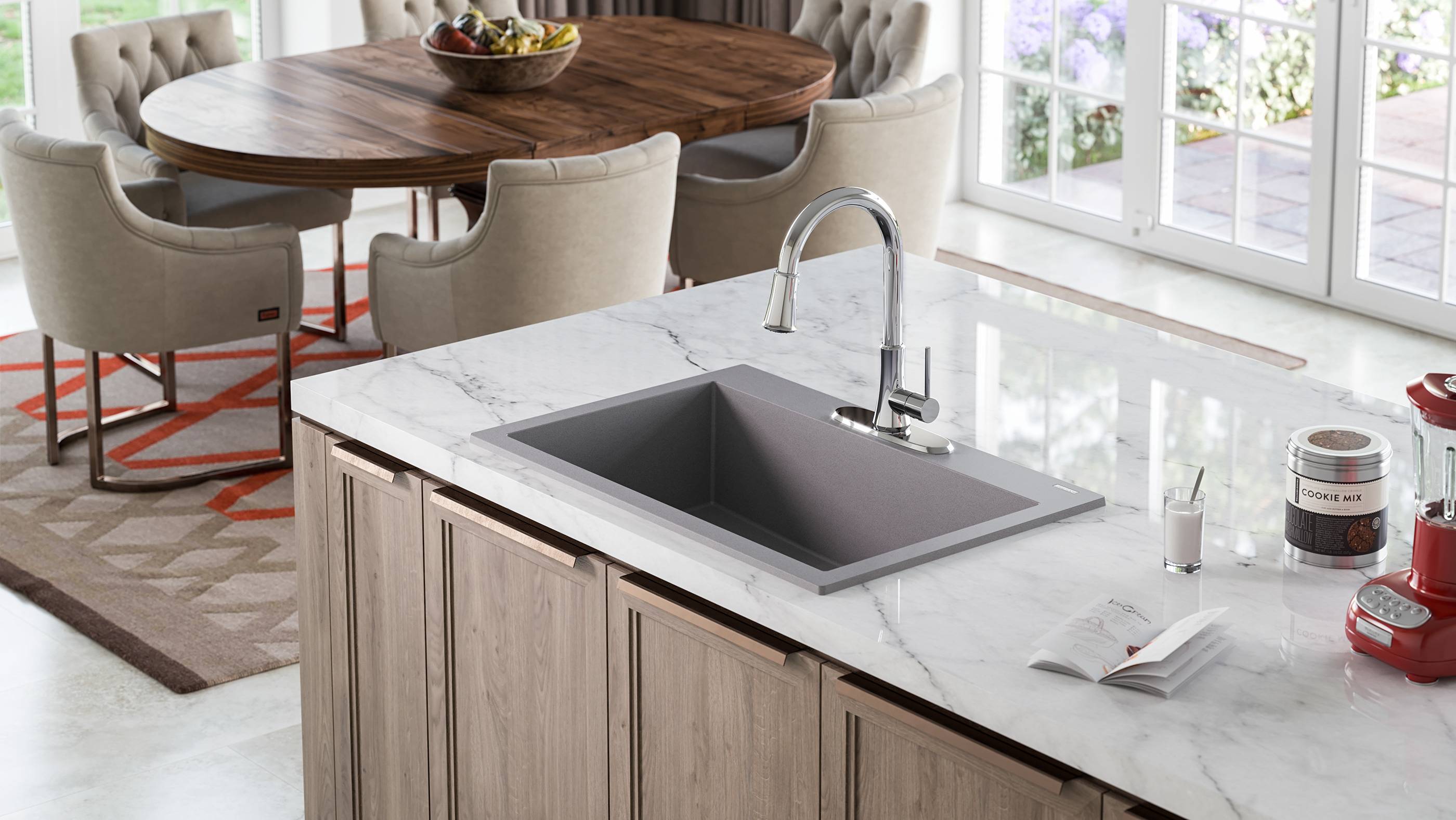 使用花崗巖水槽的時候,就完全不需要擔心劃痕和污垢堆積的問題,花崗巖可耐300攝氏度的高溫,而且還不會褪色。