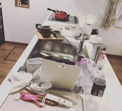 東倒西歪、毫無秩序的占據著廚房的每一個角落