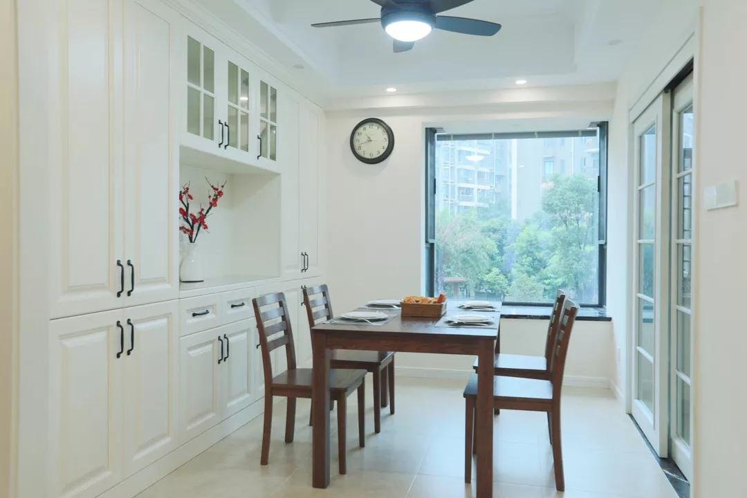 業主家五口人一起生活,三世同堂。因為孩子年紀還比較小,所以女主人跟設計師說,設計的時候不用太注重外表,但是功能性要強。 所以整套三居室,不管是硬裝還是軟裝,都是最簡單的顏色。簡潔的同時又透露出生活品味,一家老小都很喜歡。 現代美式簡單自在,沒有太多造作的修飾與約束,不經意中也成就了另外一種休閑式的浪漫。從文化的角度上看,美國人很注重家庭氛圍,所以美式風很適合人比較多的家庭。