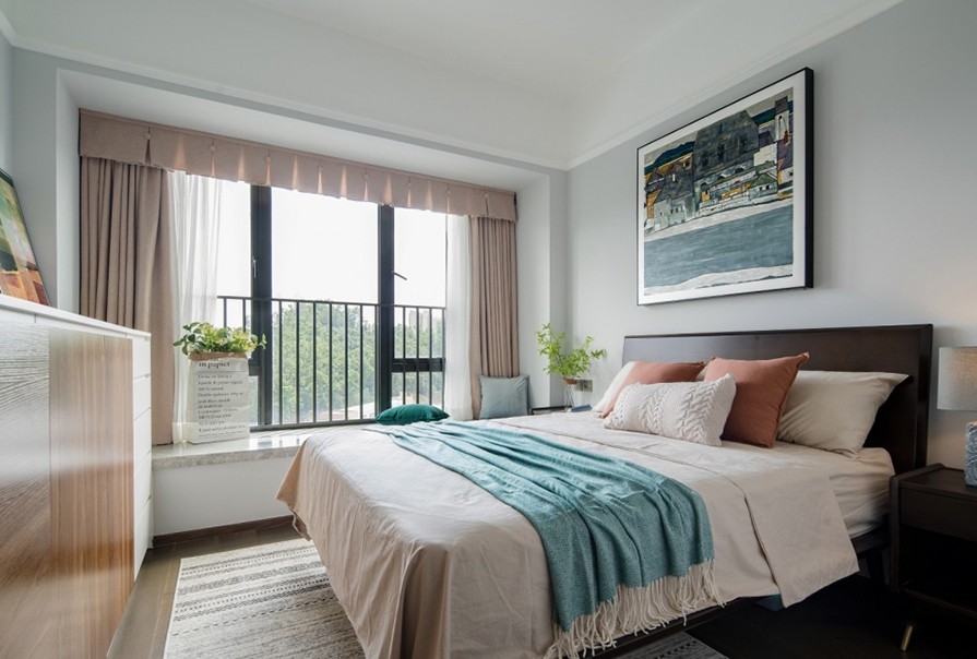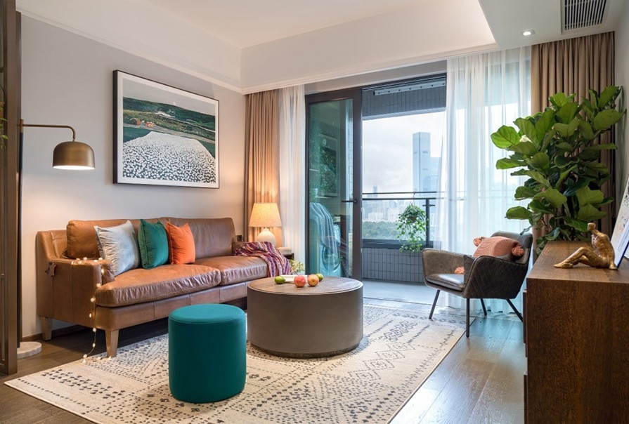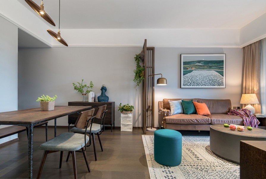 這一套混搭風(fēng)既有北歐風(fēng)的簡約與自然,也有現(xiàn)代風(fēng)格功能性強的優(yōu)勢。簡單的橙藍(lán)撞色,讓整個空間都多了一點活潑的氛圍。