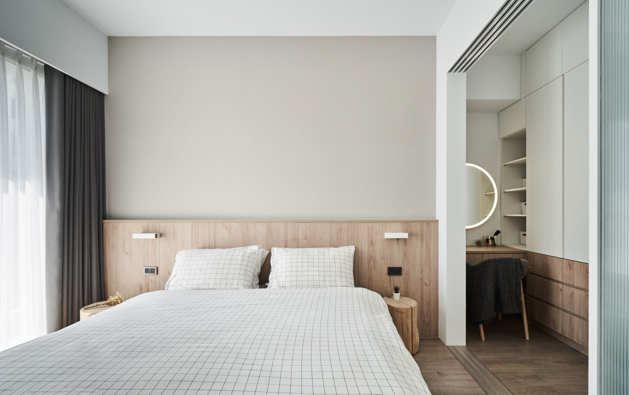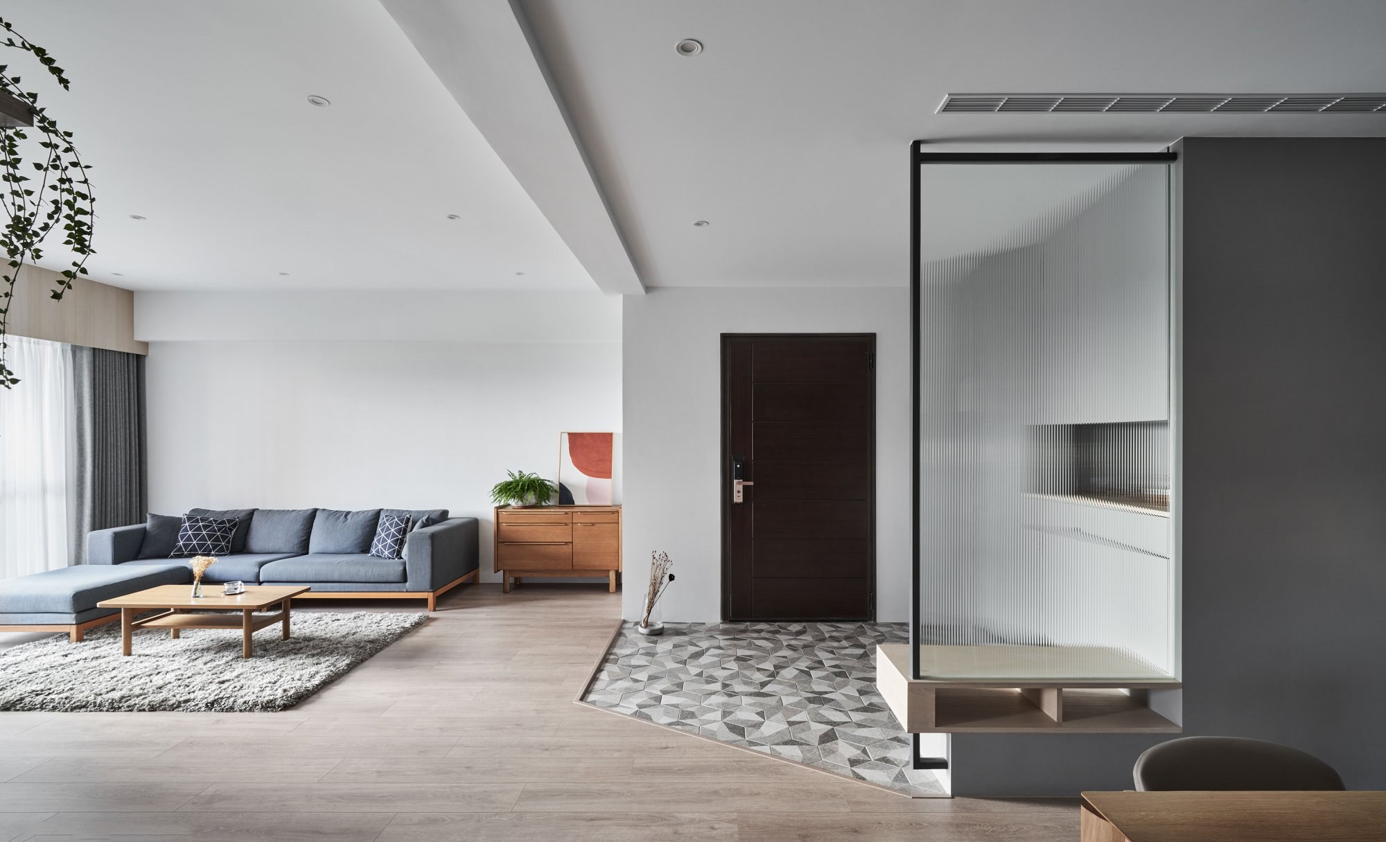 106㎡ | 以無彩的沉穩、木質的溫潤搭配玻璃紋理與光線交織