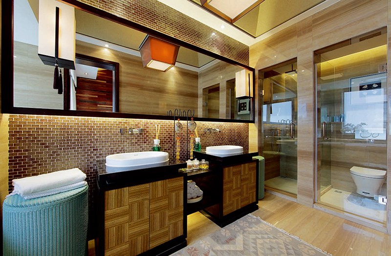 這一套東南亞風格的案例,廣泛運用了自然木材的元素,配以燈光的變化,體現了一種穩重及豪華。