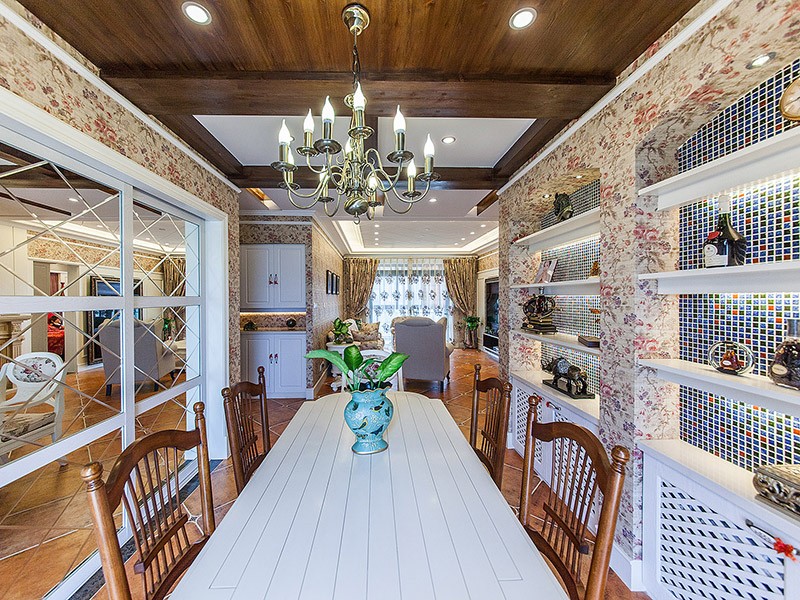 因為女主人對碎花的布料情有獨鐘,所以設計師將碎花的元素完美地應用在了客廳裝飾上,整個客廳仿佛成了一份包裝精美的禮物。