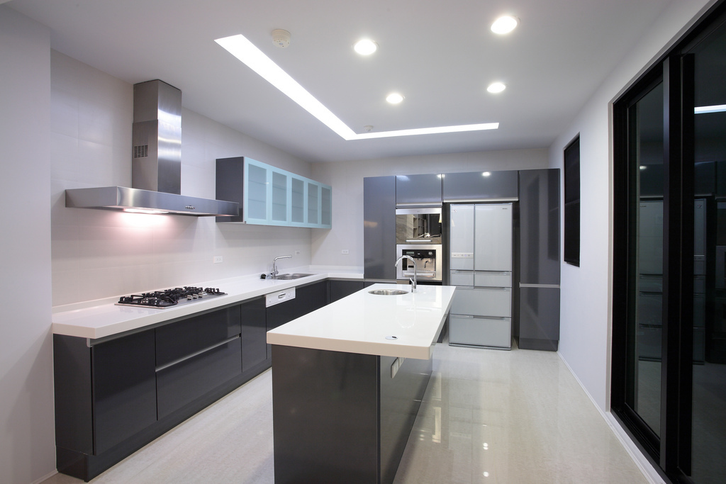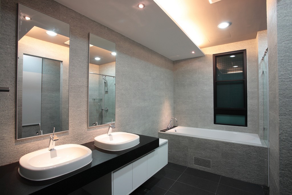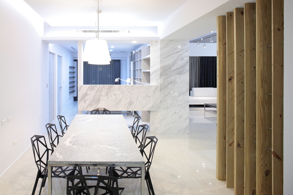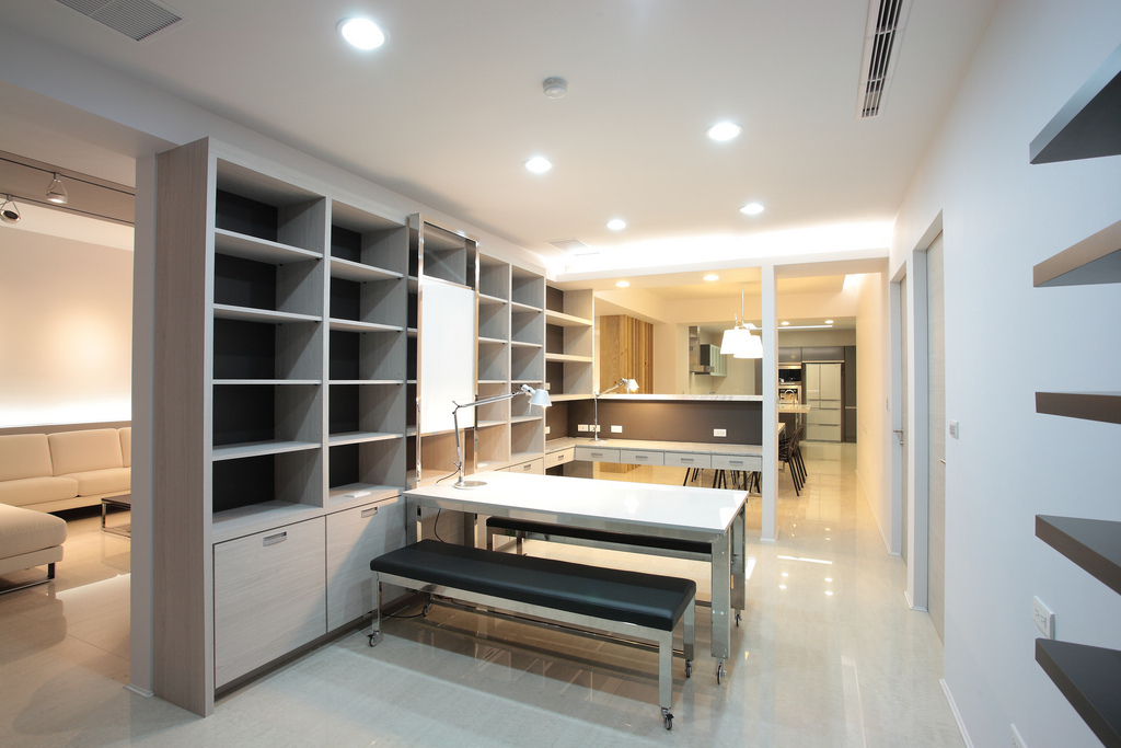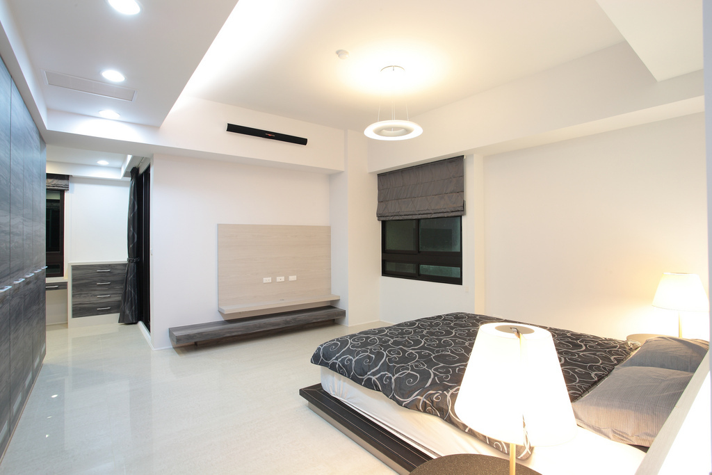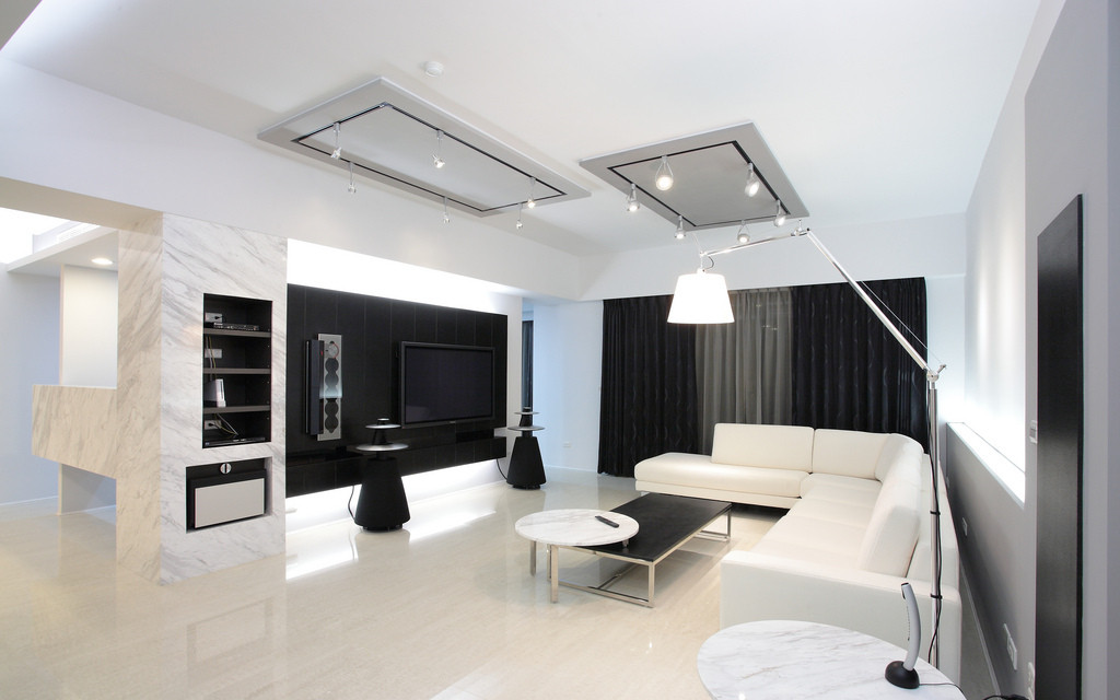 黑白灰的搭配在現代風格里十分常見,簡簡單單就能做出當代人都喜歡的時尚設計。燈具讓每一個空間都顯得很明亮,彌補了采光不足的劣勢。