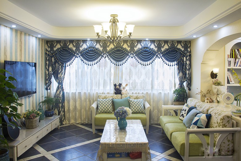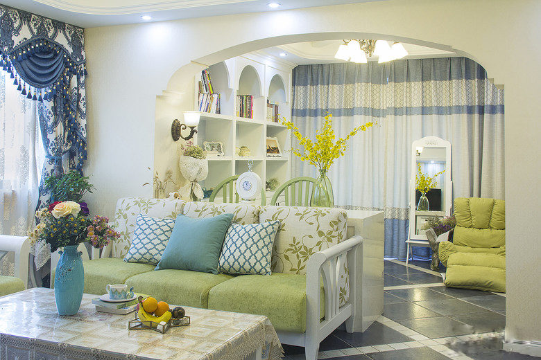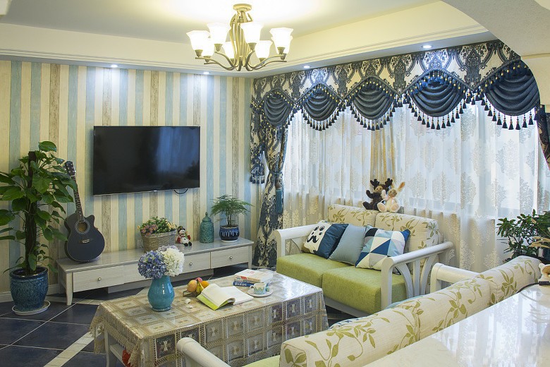 南寧海普·四季綠城毛坯房77平米地中海風(fēng)格裝修案例效果圖