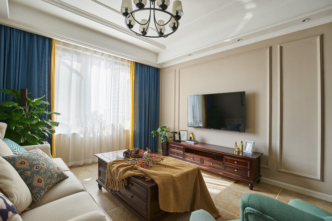 這套為三口之家準備的美式風格,風格清新,溫馨舒適,衛生間把藍色作為主色調,有一種航海出行的童心。