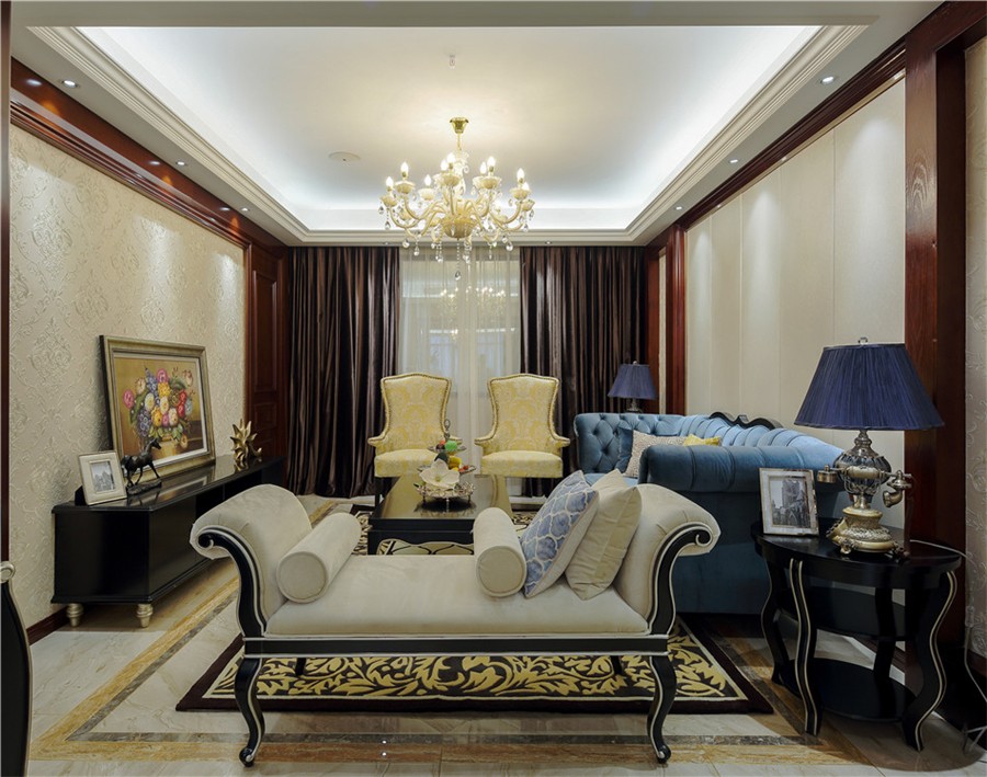 南寧綠地城130平米三居室新古典風格案例效果圖