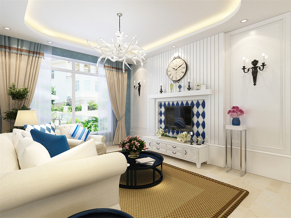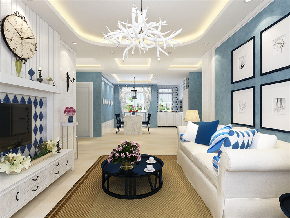 南寧親水灣毛坯房88平米地中海風(fēng)格裝修案例效果圖