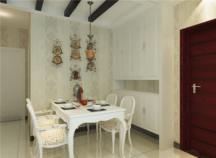 碎花在田園風里是必不可少的元素,設計師在電視背景墻上增添了弧線設計,雖然只是個簡單的小設計,但是卻能增添客廳的層次感。