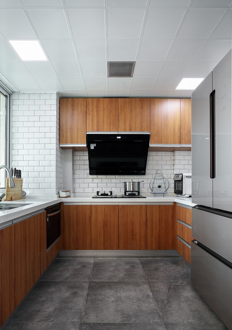 設(shè)計師重點在于打造一種中式風(fēng)格寧靜致遠(yuǎn)的禪意,所以用淺灰色的布藝沙發(fā)和木質(zhì)家具搭配在一起,有一種和諧的美感。