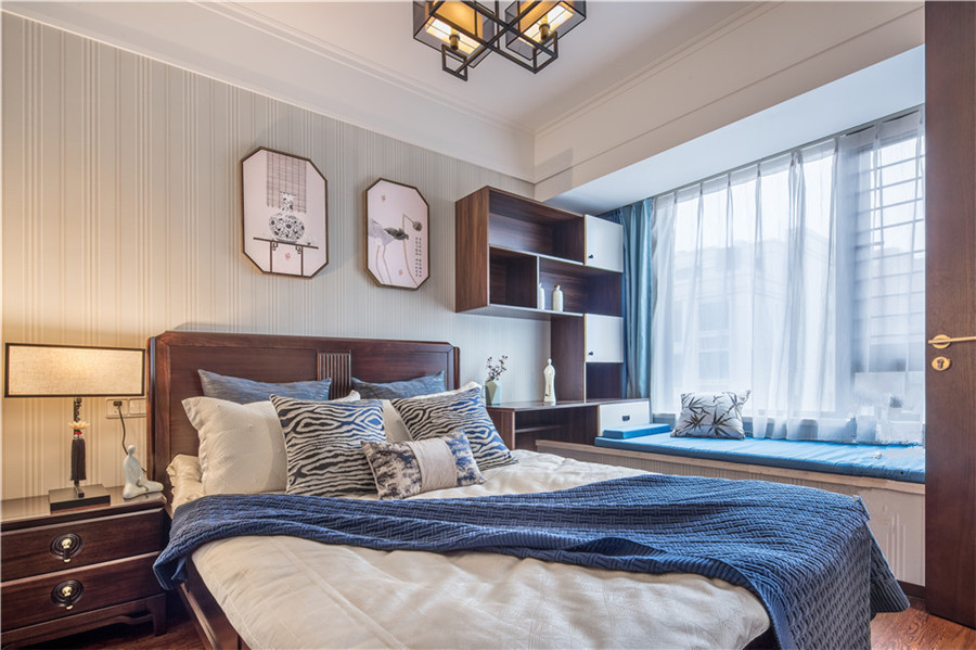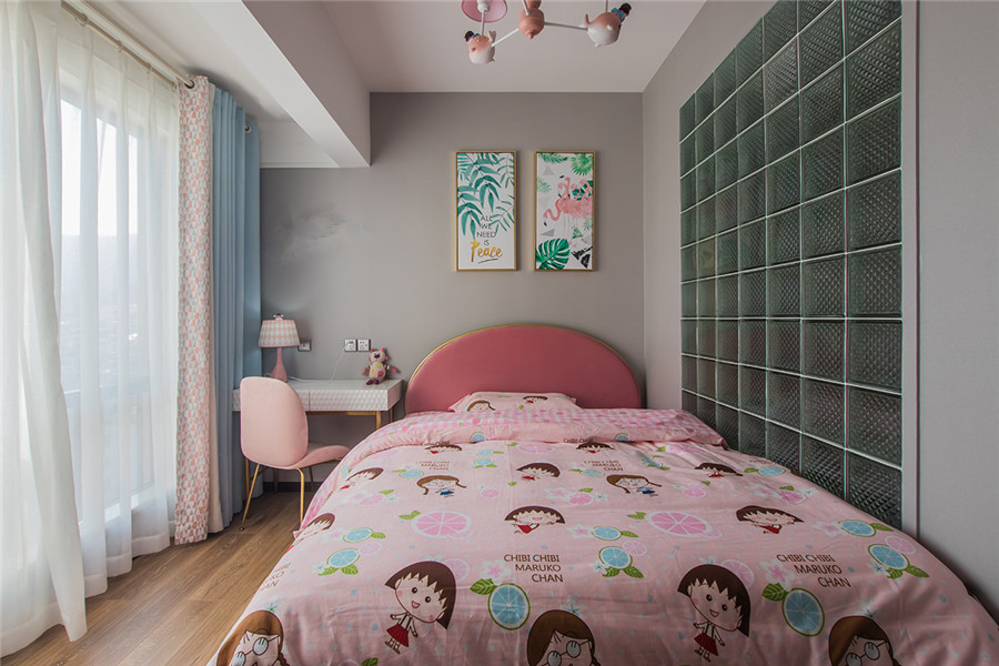 新中式風格重要的是中式元素的合理運用,在整體的家居氛圍里注入中式的典雅與禪意。設計師在設計女兒房的時候,流行元素用得比較多,充分尊重了業主的喜好與需求。