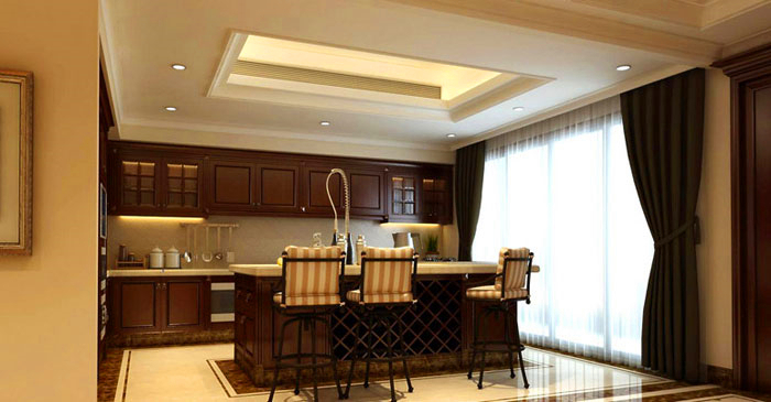新古典風格既有簡單的美感,也有華麗的裝飾,就像客廳華麗的吊燈與多樣的擺飾,也能很好地搭配純色的沙發。
