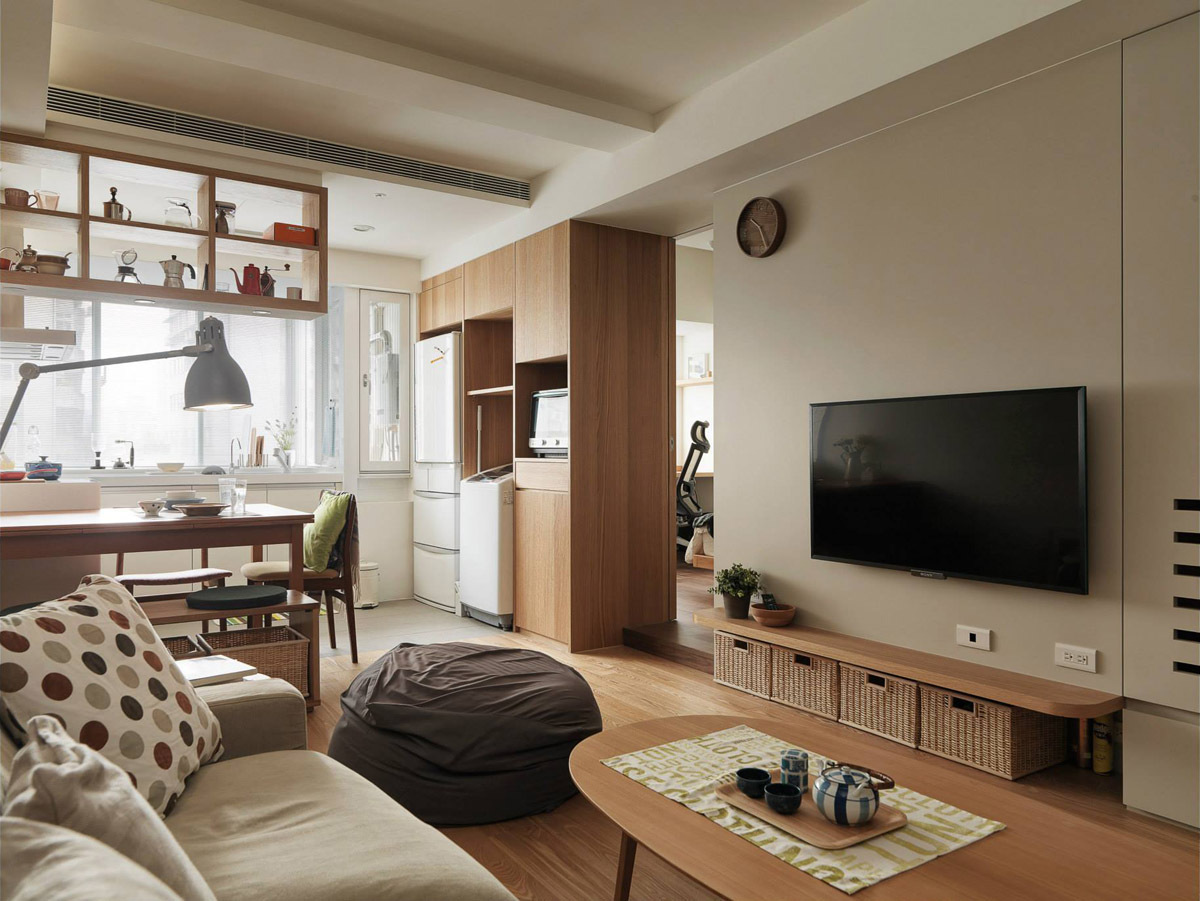 明明只是43平米的一居室,卻被設(shè)計(jì)師做出了大戶型的感覺,白色的墻面雖然簡(jiǎn)單,卻有提亮空間、開闊視野的效果。原木質(zhì)地的家具打造出了日式風(fēng)格的優(yōu)雅與靜謐。把洗衣機(jī)、冰箱等大型家居內(nèi)嵌裝進(jìn)柜子里,可以讓整個(gè)空間看起來更簡(jiǎn)潔也更美觀。