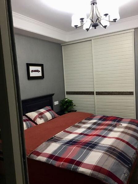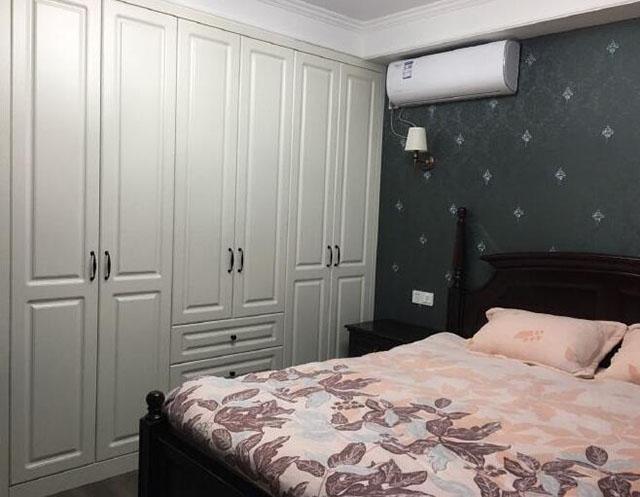 這套美式風格簡單大方又溫馨舒適,白色為主,適當的綠色做點綴,客廳里的藍色沙發穩重又有質感。臥室里的墨綠色背景墻很能吸引人的眼球,清新舒適又自然放松,定制的白色衣柜也很符合整體的風格,雖然臥室的面積都不是很大,但是儲物功能還是比較強的。
