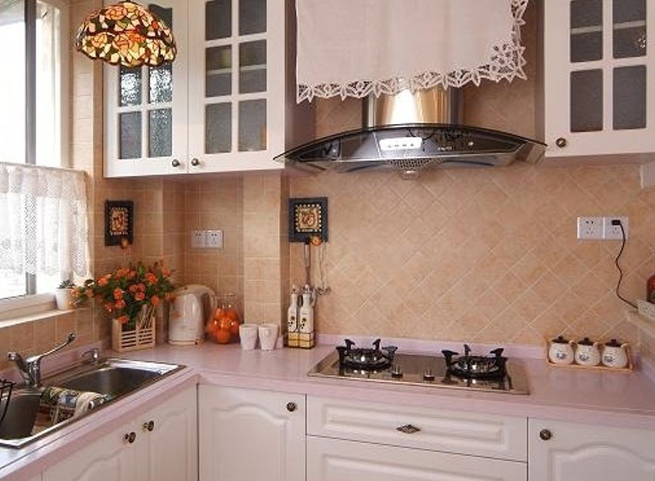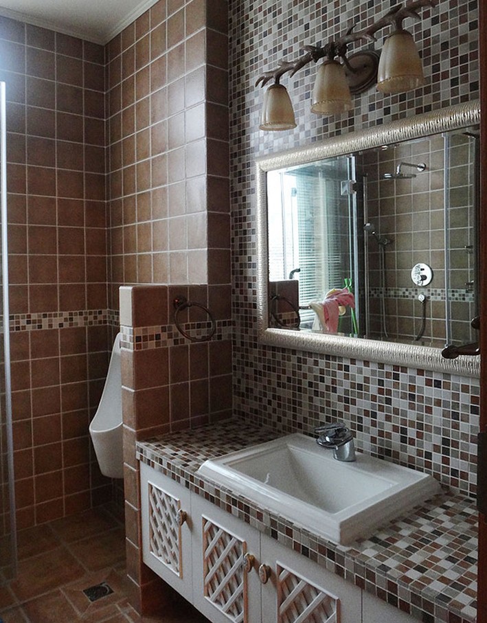 碎花是田園風格里最常見的元素之一,小清新的裝飾復古又俏皮,只要選對了花樣,就算用碎花裝飾一整面墻,就不會覺得花哨。衛生間用馬賽克瓷磚鋪設盥洗臺,馬賽克瓷磚裝飾效果好,防水效果也強,廚房、衛生間等地方經常能看到它們的身影。