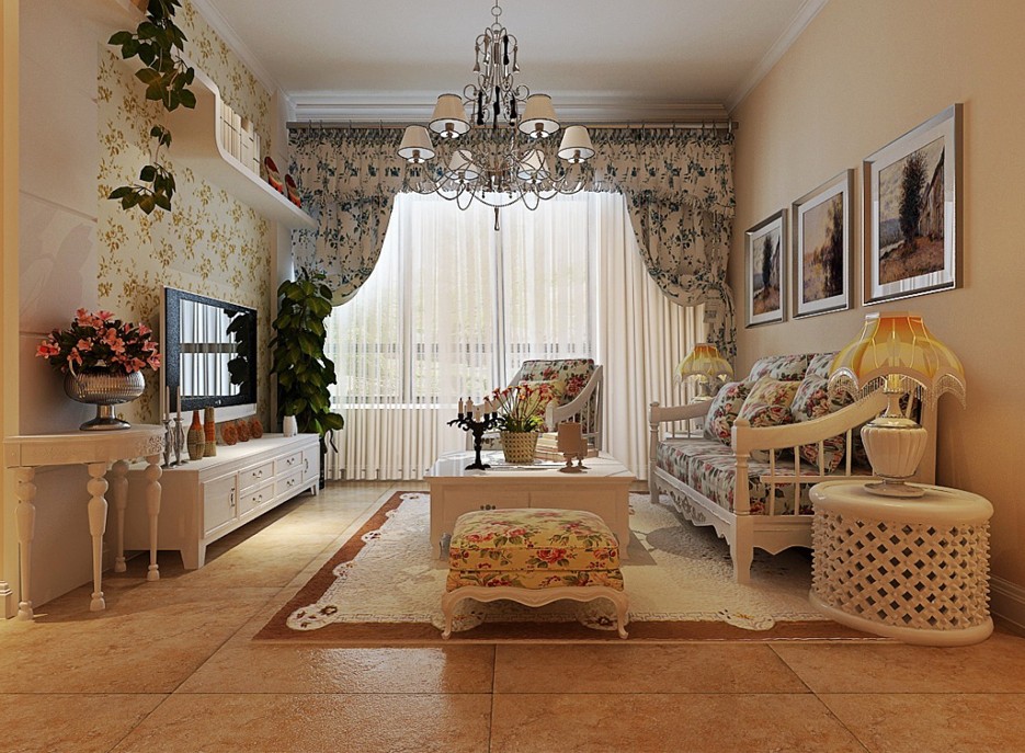南寧富鳴陽光城108平米田園風格案例效果圖