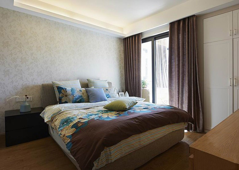 后現代風格最擅長結合多種風格的特色與優勢,雜糅到整套家居裝飾中,但是卻不會顯得雜亂與慌張。這套后現代的二居室簡單時尚,也成熟穩重,大氣的裝飾,是很多精英人士的首選。臥室的色調是比較深的,但是窗戶的采光很好,所以白天的時候很明亮,晚上也很適合休息。