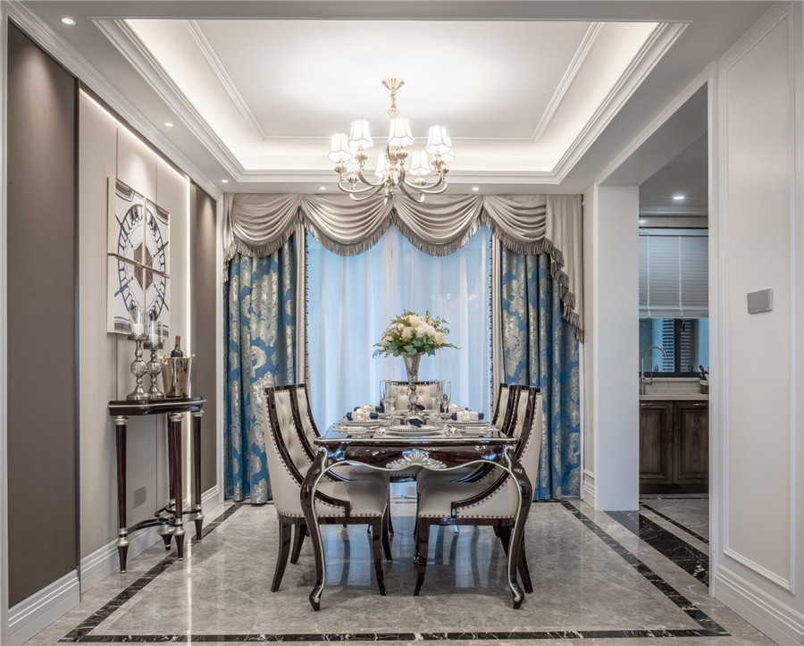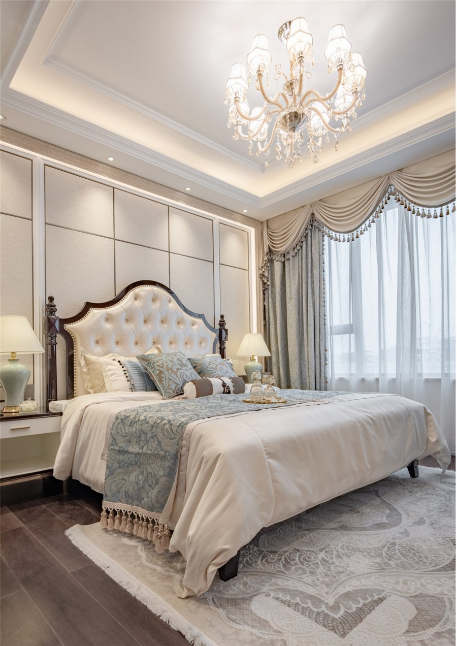 業主夫妻很喜歡歐式風格的貴氣與華麗,但是他們又不希望家里的配色太多,整體上盡量簡潔一點,所以就有了這樣一套簡單典雅又不失貴氣的歐式案例。墻面和家具的主色調是白色,配以木色的地板,簡單大方。每一處的家具都體現出了精致的美感,輕奢、典雅、貴氣。