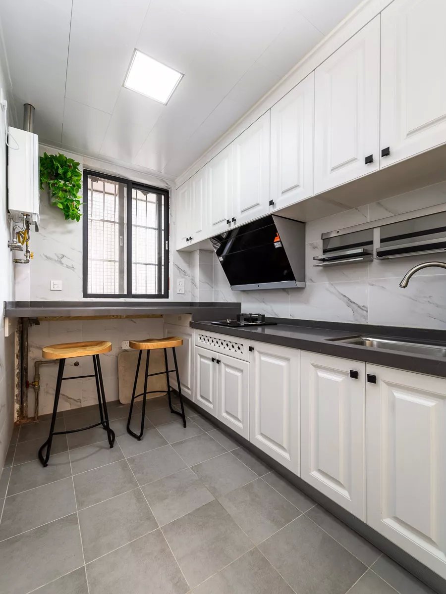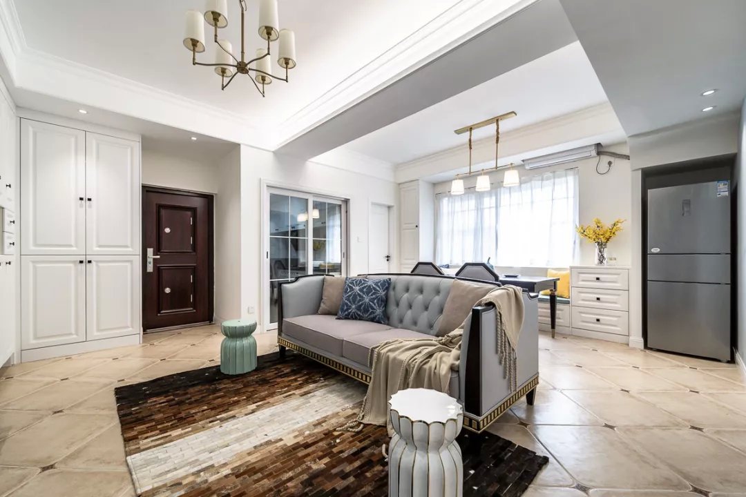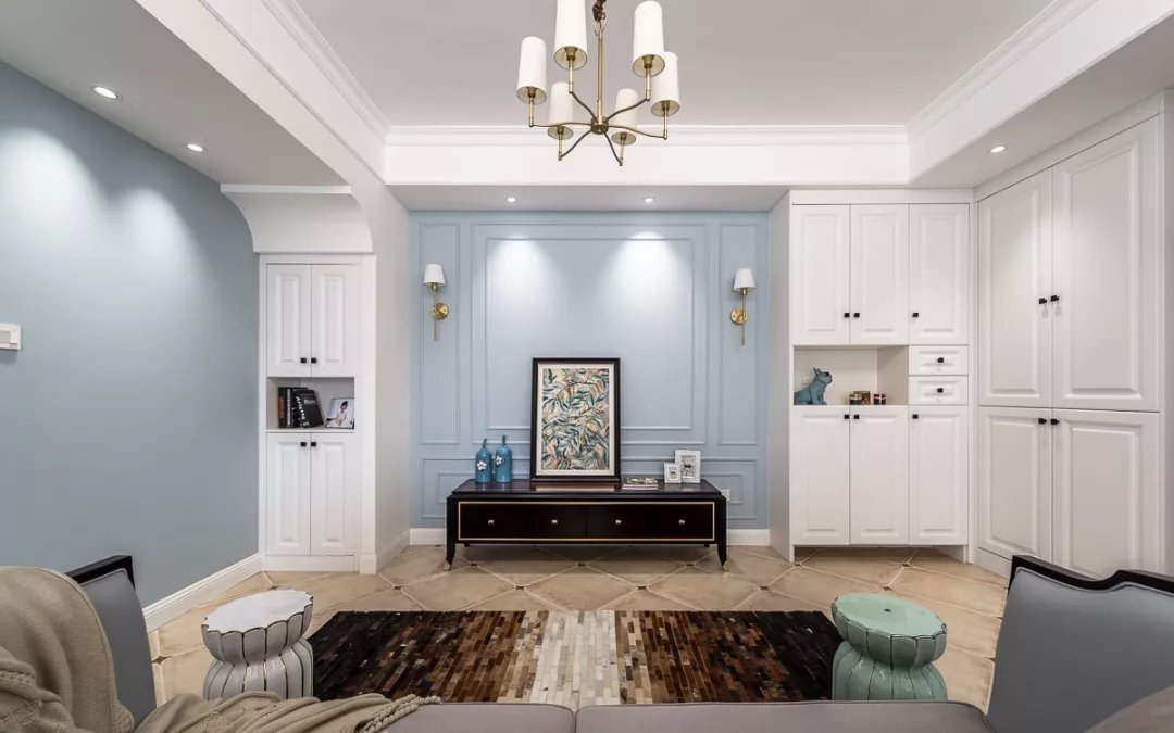 業主夫妻都是白領,都喜歡現代風格的簡單舒適,所以這套二居室的色調都很簡單,木色地板、白色柜子、灰色布藝,另外還有灰調藍色的背景墻,搭配起來和諧又舒適。女兒房的背景墻和床上用品都選用的粉色,是小女孩普遍都能夠接受的清新色調,優雅又活潑。
