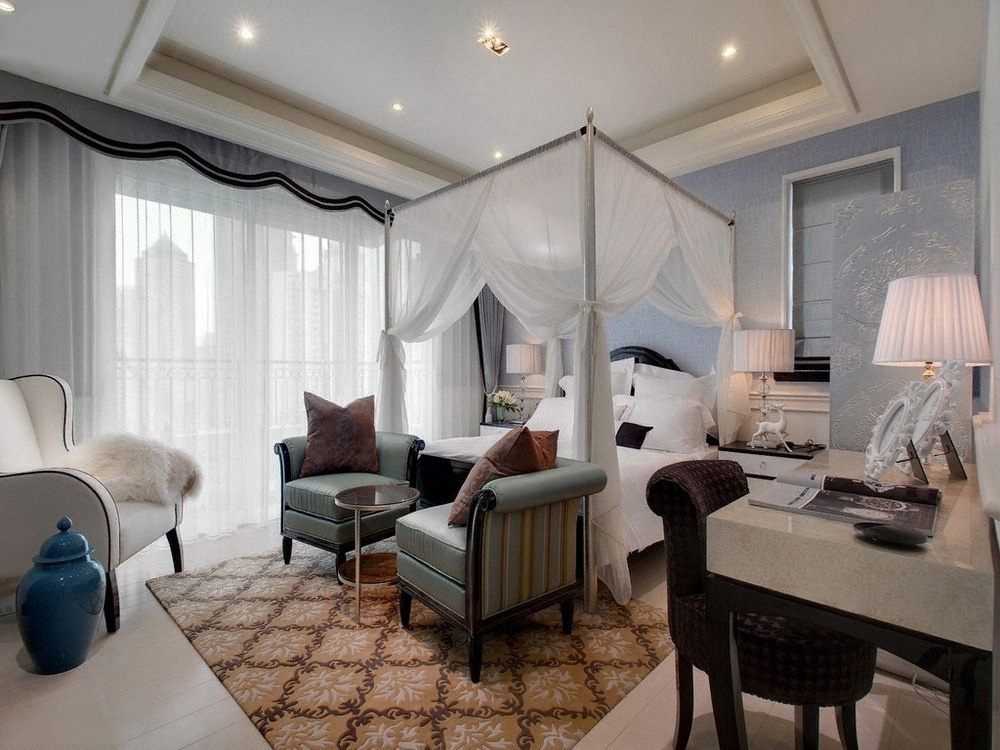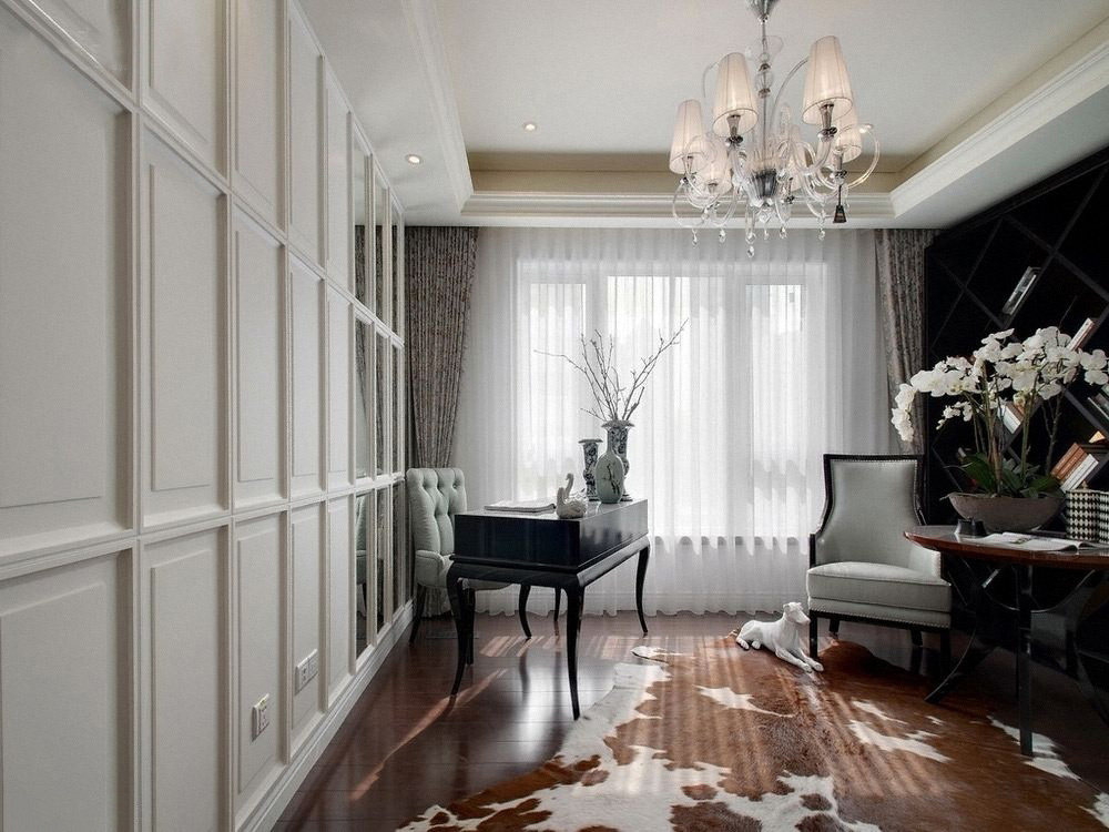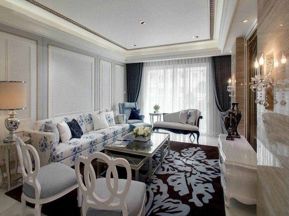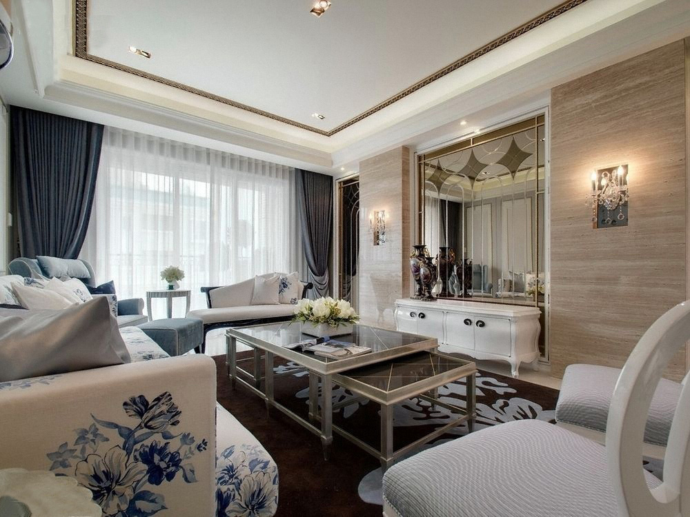 這套新古典風格的案例有很濃重的混搭風味道,融合了古典風格、現代風格的特色,既有一種華麗感,也有一種時尚感。客廳的空間比較大,所以選用的是一些較為大氣的家具,打造了一種輕奢的貴氣感。相比之下,臥室的裝潢就要簡單很多,舒適為主。