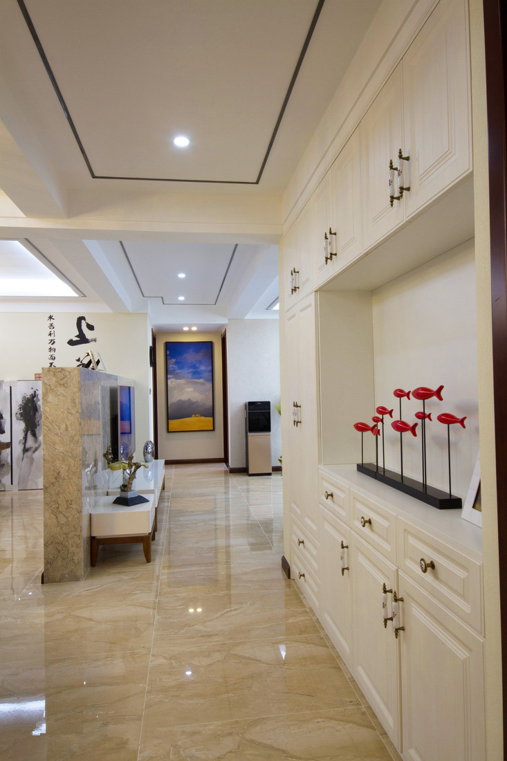 后現代風格成熟穩重,最擅長雜糅其他風格的特色,融合其他風格的優勢,蘊含著一種“海納百川”的文化底蘊。所以你在這套三居室里,能看到中式風的書房,也能看到現代風的客廳。客廳和書房之間,用了一面半人高的墻做隔斷,可以說是十分突破與創新了。