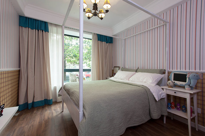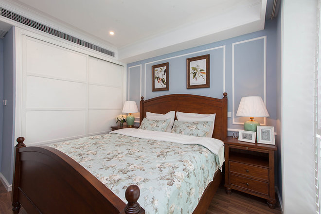 暖黃色的燈光為客廳增添溫馨感,布藝沙發(fā)質(zhì)感十足,讓人有一種下了班就想“攤”在上面玩手機(jī)的感覺。歐式風(fēng)格里的每一件裝飾,都體現(xiàn)著精致。次臥用的是非常清新的淺藍(lán)色,配以碎花的床飾,就能輕易打造出一個(gè)自然氣息十足的休息空間,木質(zhì)床具彰顯復(fù)古韻味。