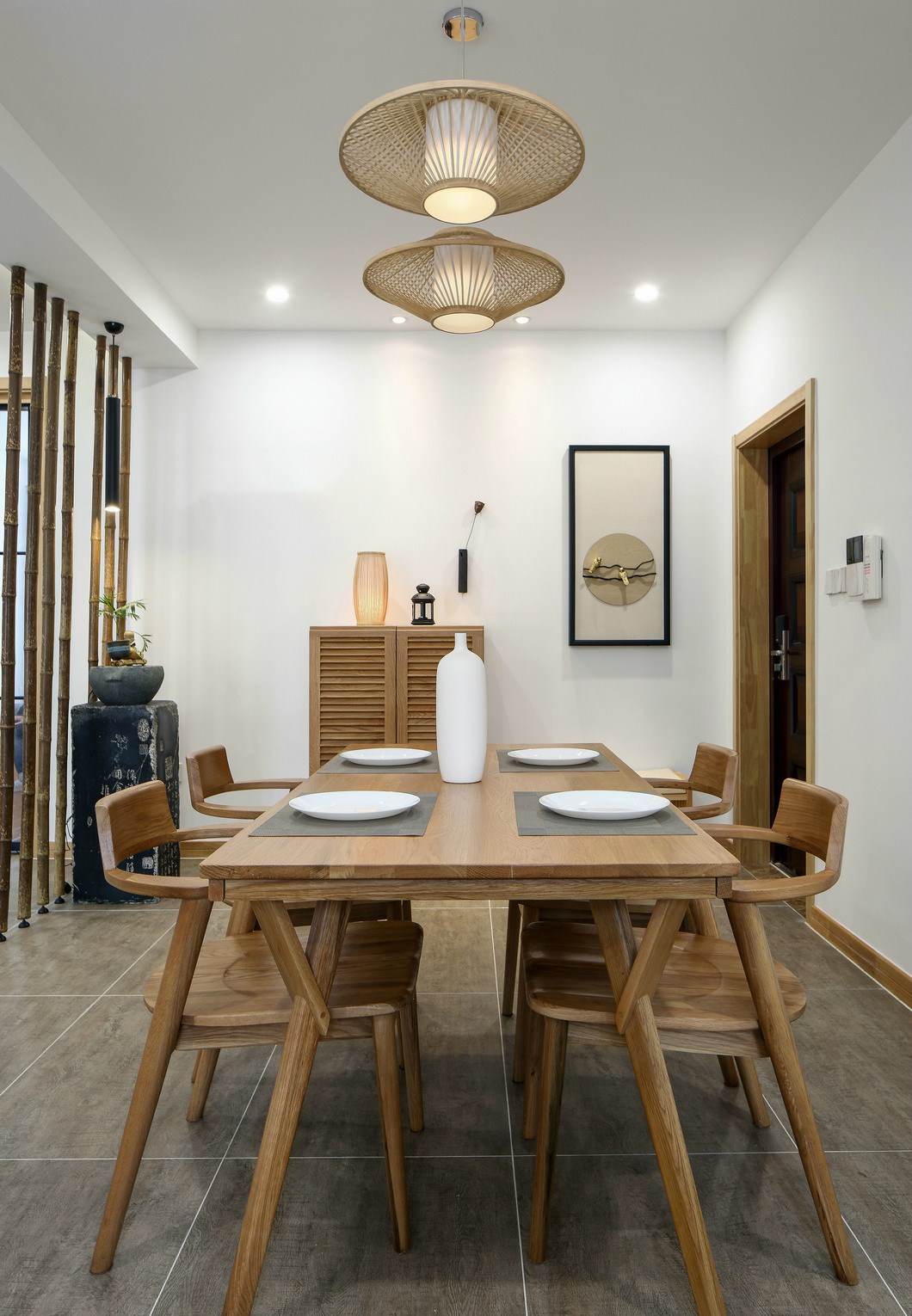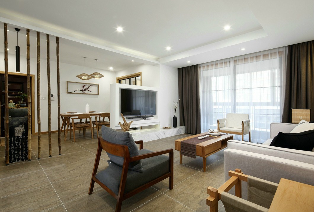 蘇軾在《于潛僧綠筠軒》寫道:“可使食無肉,不可居無竹。”業主本身就很喜歡竹子的氣節與風骨,所以設計師在業主家里,做了一面竹子樣式的屏風,隔開了客廳與玄關,跟詩人隱居竹林有異曲同工之妙,設計上很有巧思。