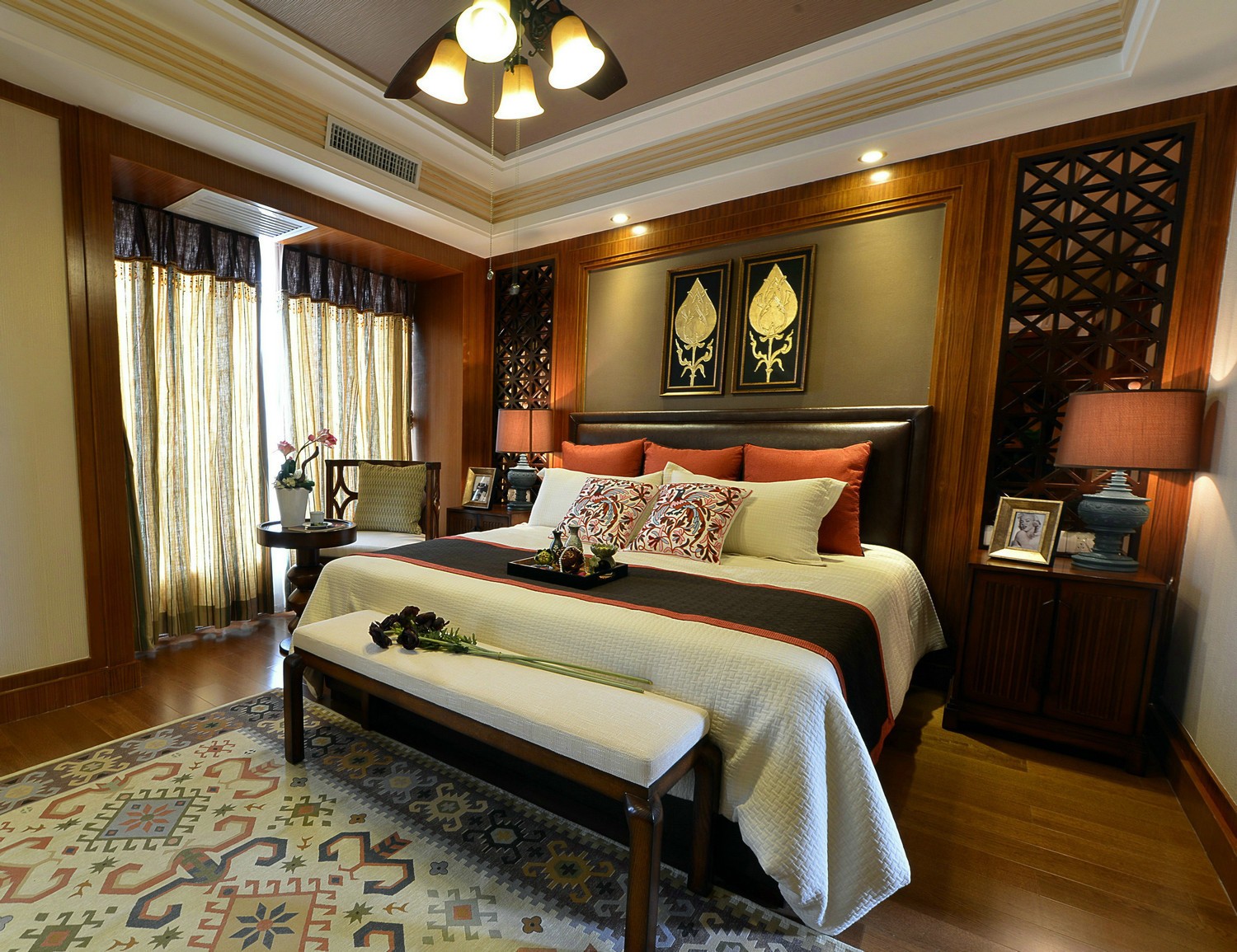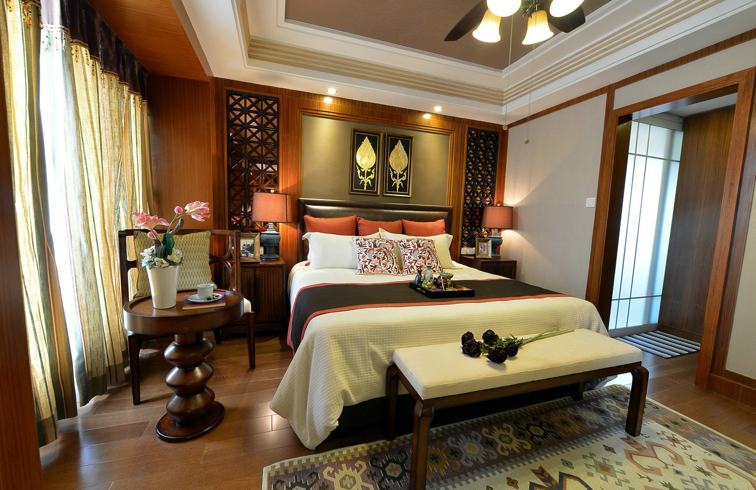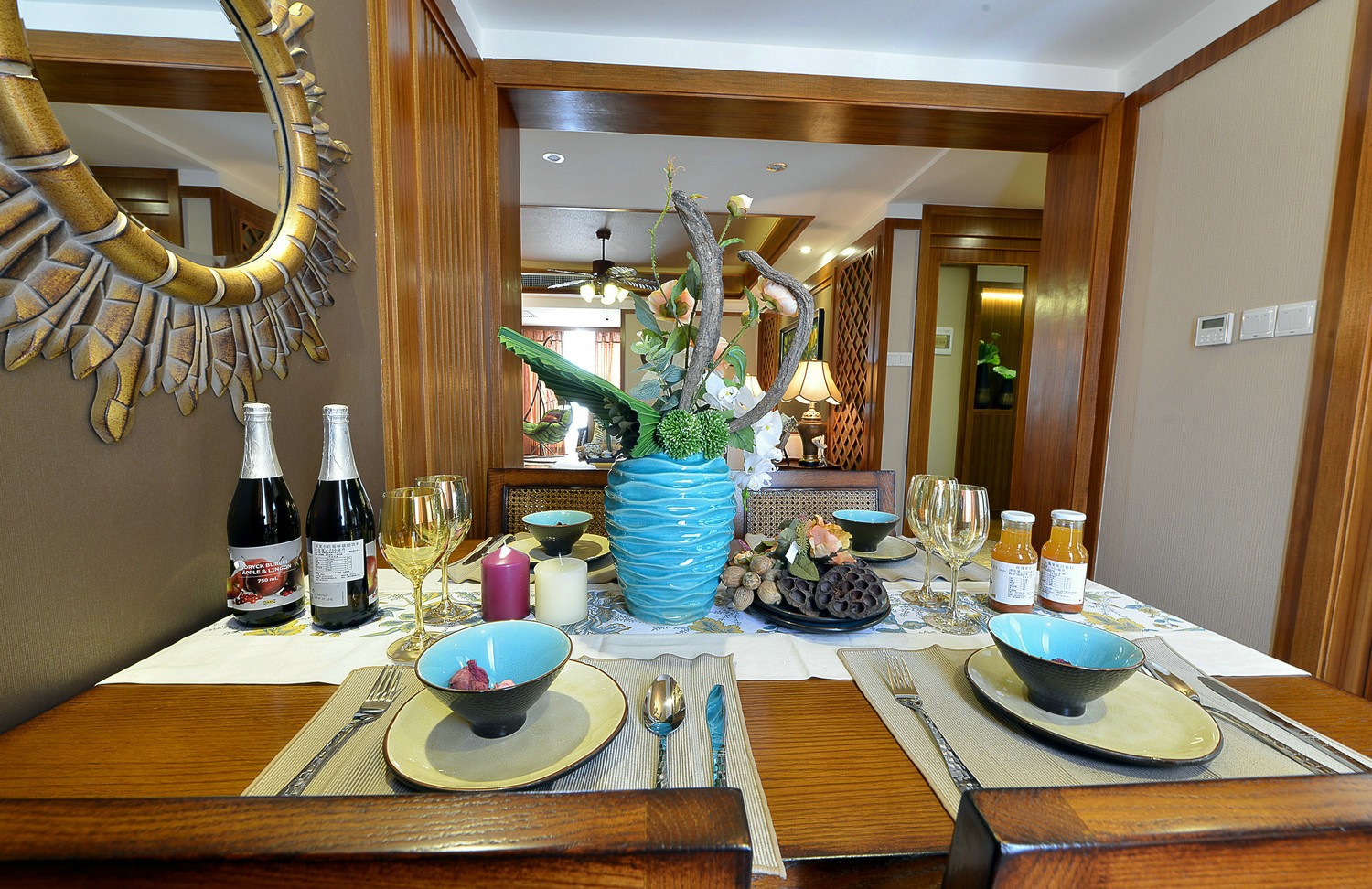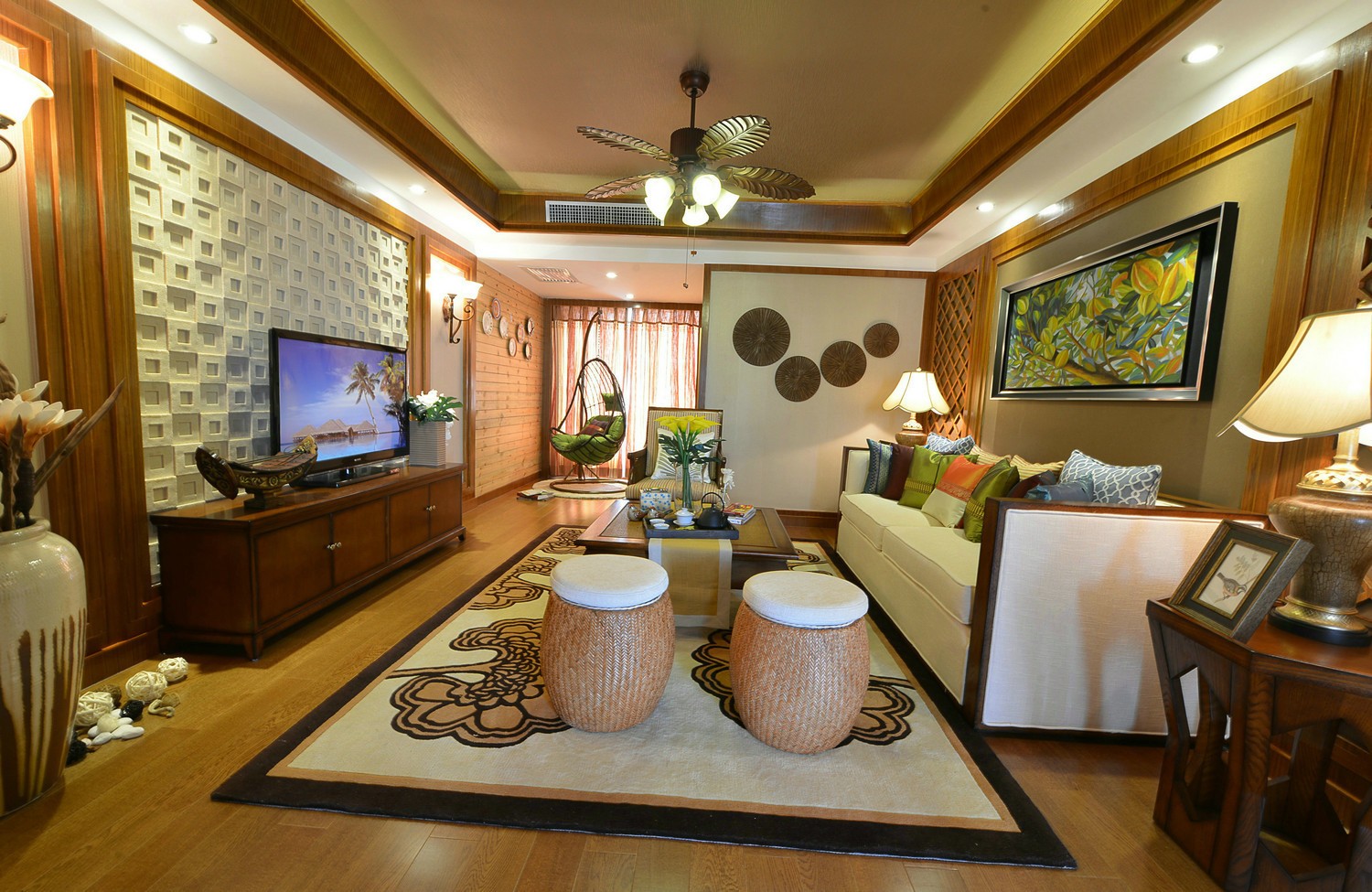 這套東南亞風格的三居室,民族特色和異域風情可以說是十分明顯了,奢華大氣的裝飾加以自然清新的配飾,活潑親切,熱情奔放。東南亞風格的裝修,總能在短短的時間里,給人以強悍的視覺沖擊,喜歡東南亞異域風情的業主,可千萬不能錯過!