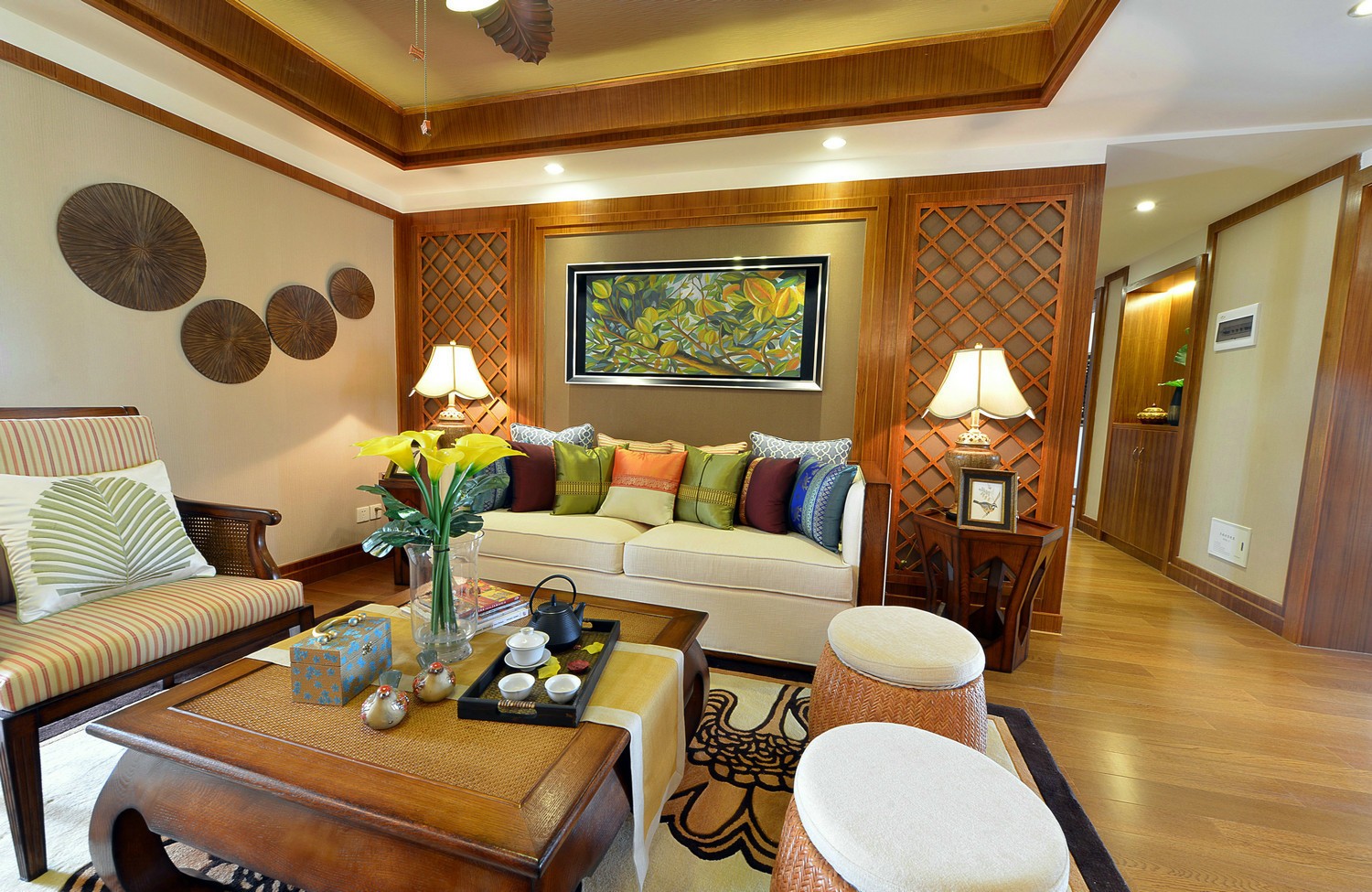南寧綠地東盟國際107平米毛坯房東南亞風格裝修案例效果圖