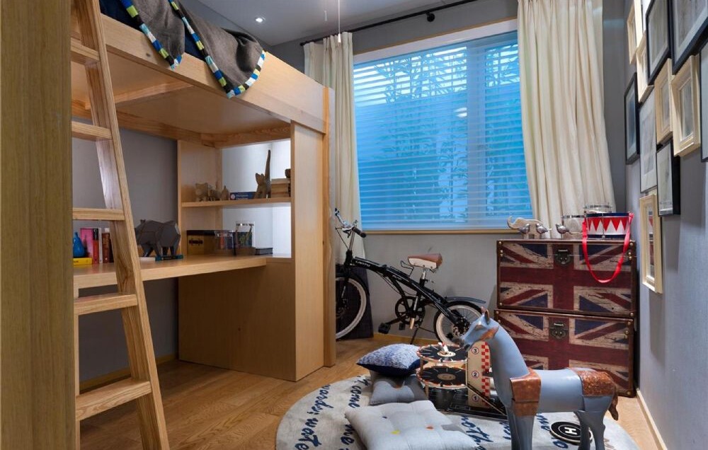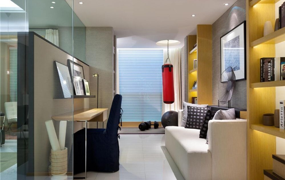 這套二居室的面積看著不大,但是該有的功能區可是一點都不少,書房的旁側就是健身區,能夠滿足家里人的多種需求。次臥的面積不大,所以采用了上床下桌的裝修方式,既保證了活動的空間,也不會太過擁擠。