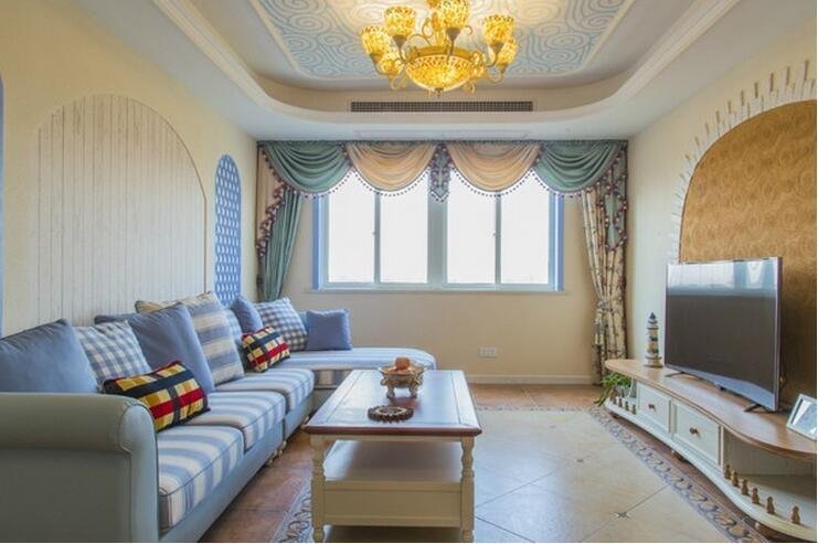 業主喜歡地中海風格的溫馨閑適的感覺,但是她覺得以往常見的地中海風格,用了太多的藍色,不太好看,所以要求設計師設計的時候以淺色為主,于是就有了這樣一套清新閑適的二居室。藍色只是點綴,簡單的配色反而能帶來不一樣的效果。