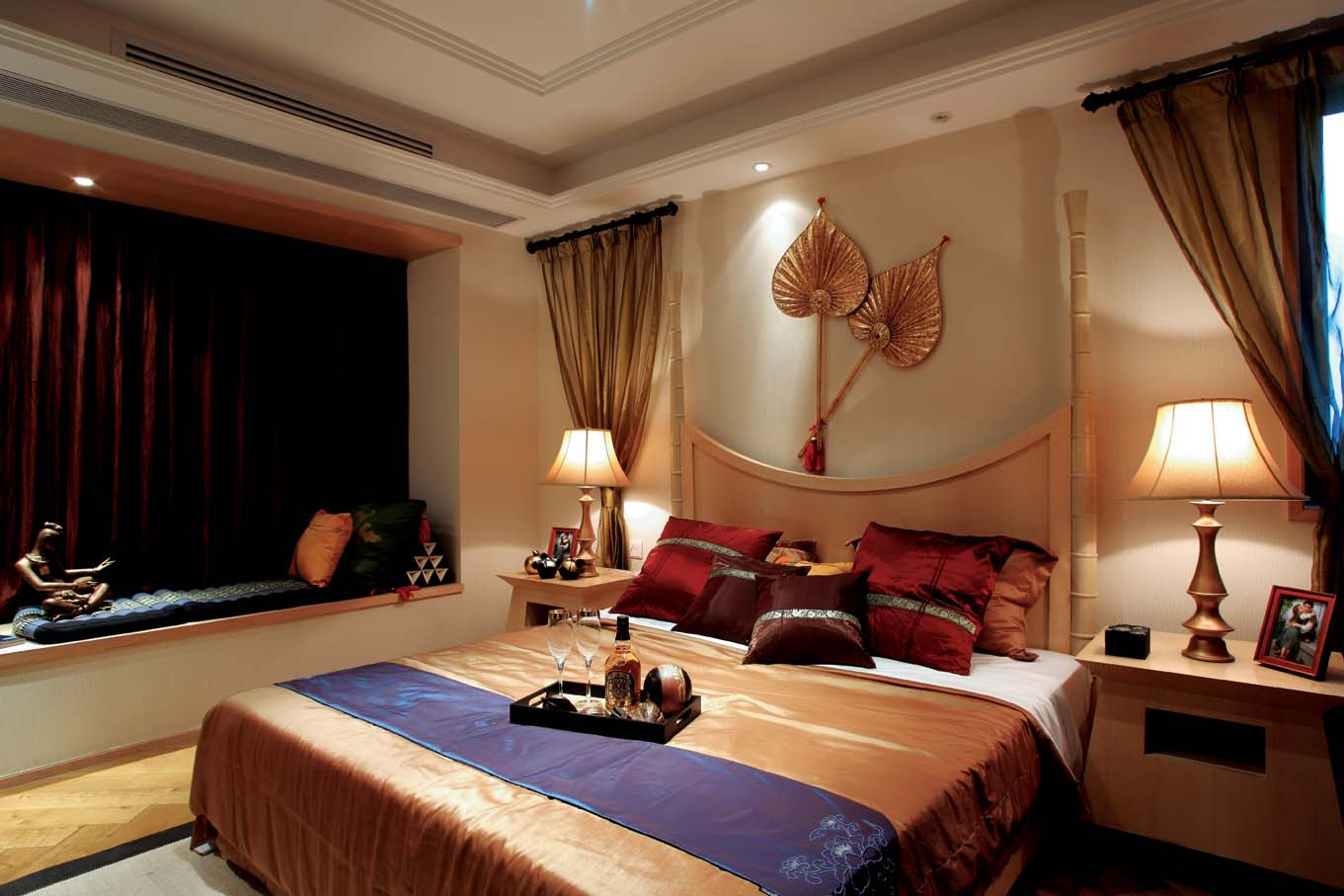 東南亞風格兼具靜謐與雅致、奔放與脫俗的特色,適合喜歡民族特色與異域風情的業主。這一套東南亞風格處處可見別出心裁的小設計,就比如餐廳背景墻上的祥云紋,就體現著一種禪意與厚重。