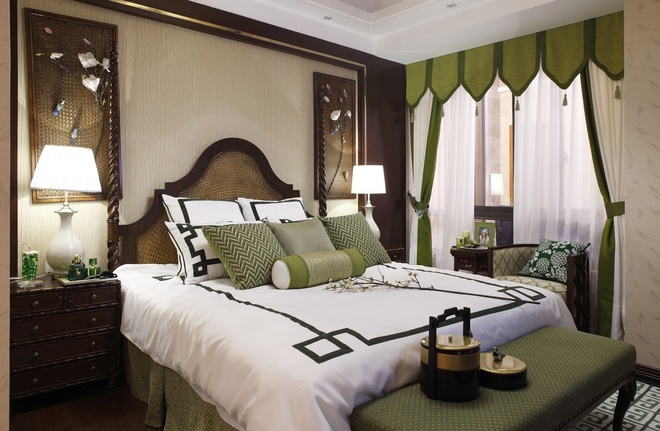 業主喜歡東南亞風格里的特色民族風情,這套東南亞風格運用了很多民族元素的裝飾,用綠色做點綴,搭配上木色的家具,會有一種自然的感覺。東南亞風格注重打造一種奔放感與自由感,家居風格別樹一幟。