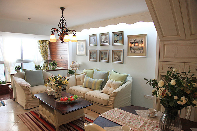 南寧人和萊茵鷺湖毛坯房99平米歐式風格裝修案例效果圖