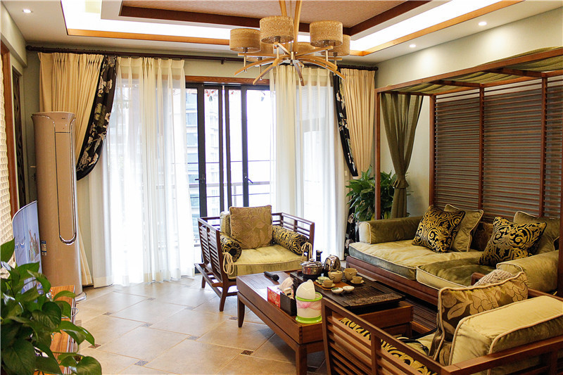 南寧嶺上國際毛坯房110平米裝修東南亞風(fēng)格裝修案例效果圖