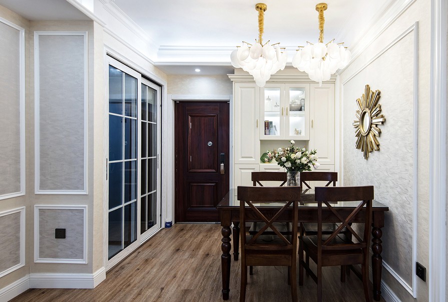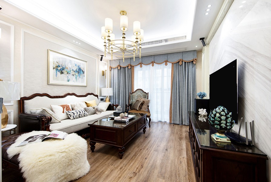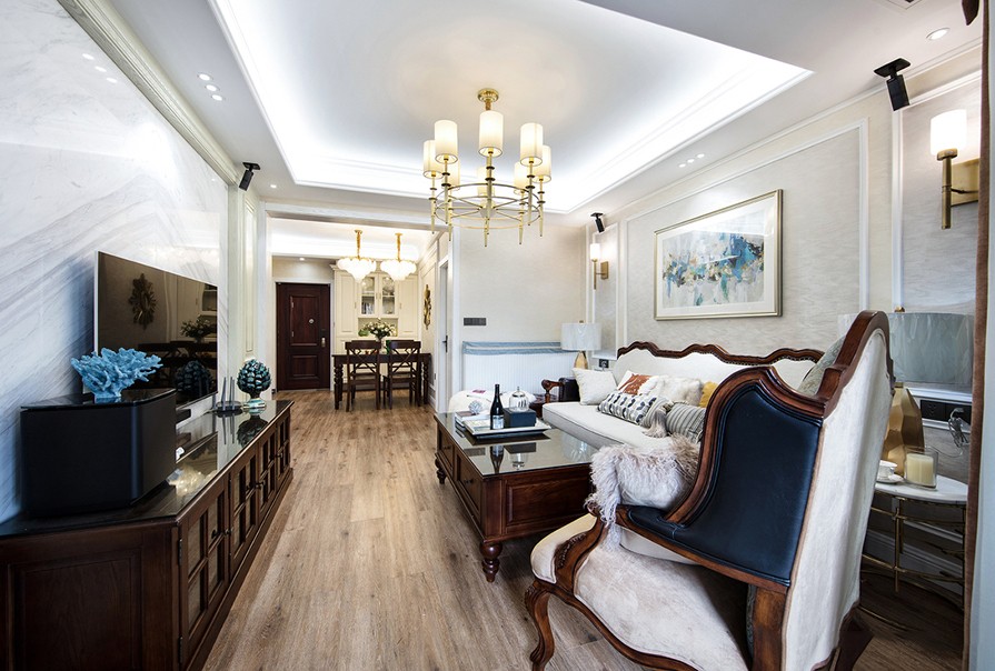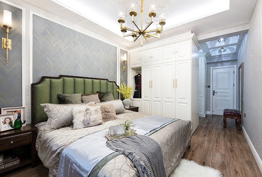 浪漫美式風最大的特色,就在于格調和質感的打造。全屋以白為主,家具采用白色古樸的實木家具,家具邊緣一般都有一定的雕刻弧度。所有的臥室通鋪地板,增加了舒適度。整個設計給人一種溫馨,安穩的感受,更加適宜休息。