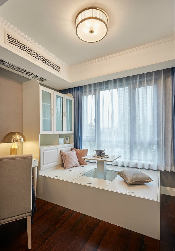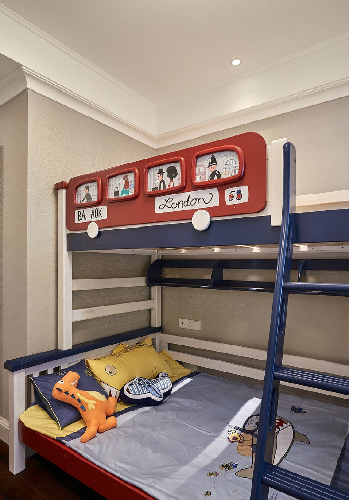經典法式風格的韻味,在于把古典元素融會貫通,讓整體的家居環境顯得優雅得體,又不失溫馨舒適。兒童房安裝了一張高低床,軟裝的搭配上盡顯童趣,整體上也不會顯得太突兀。