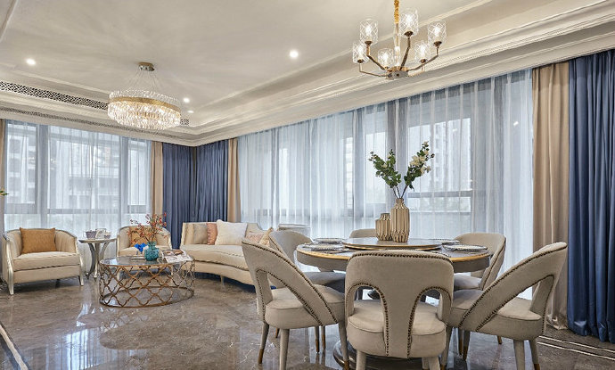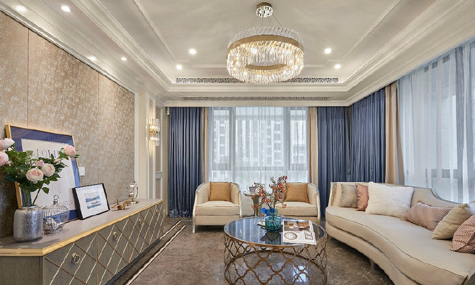 南寧龍光君悅華庭毛坯房135平米歐式風格裝修案例效果圖