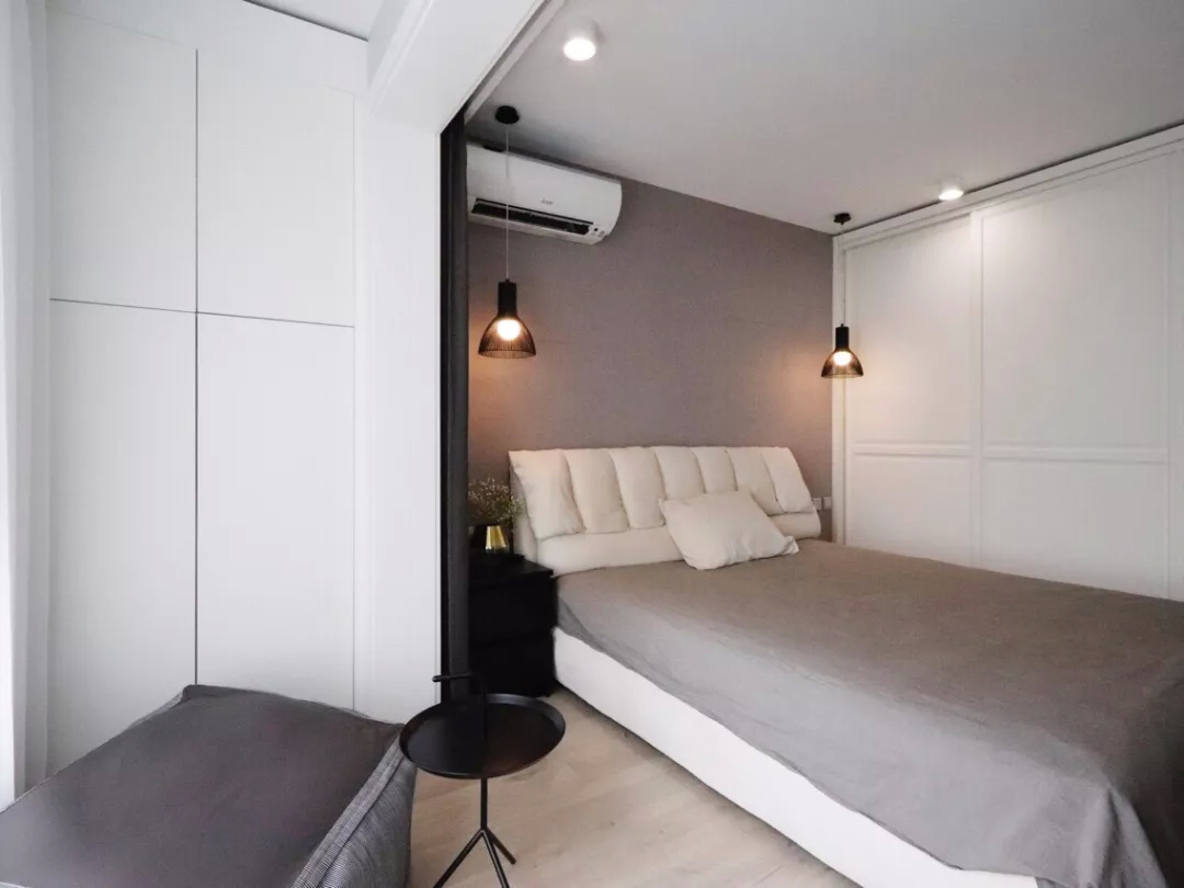 這是中式與現代風的完美融合,整體上偏向現代風,又融入了不少古典元素,整體上顯得大氣、高雅又不失設計感。兒童房的設計盡顯童趣,并不會顯得太古板。