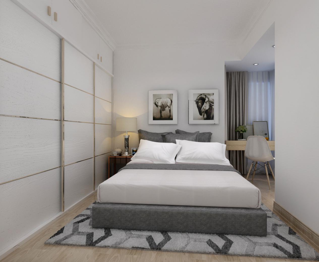 全屋以黑白灰三色為主色調,時尚簡單,穩重大氣,而且臥室里的衣柜都是“量身定制”的,儲物功能強大,空間規劃合理,而且風格上也十分地統一,設計簡單不花哨,很符合北歐風的特點。